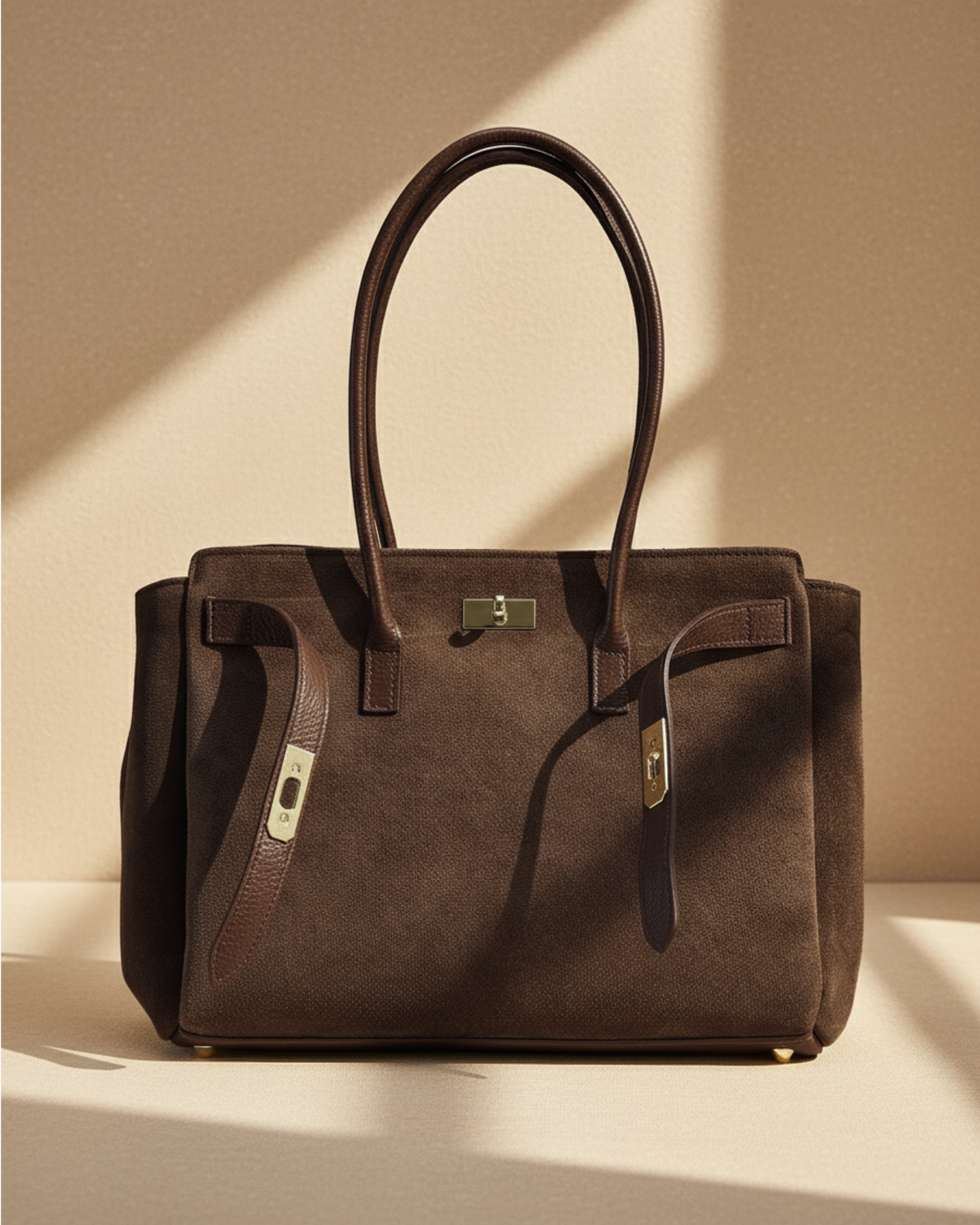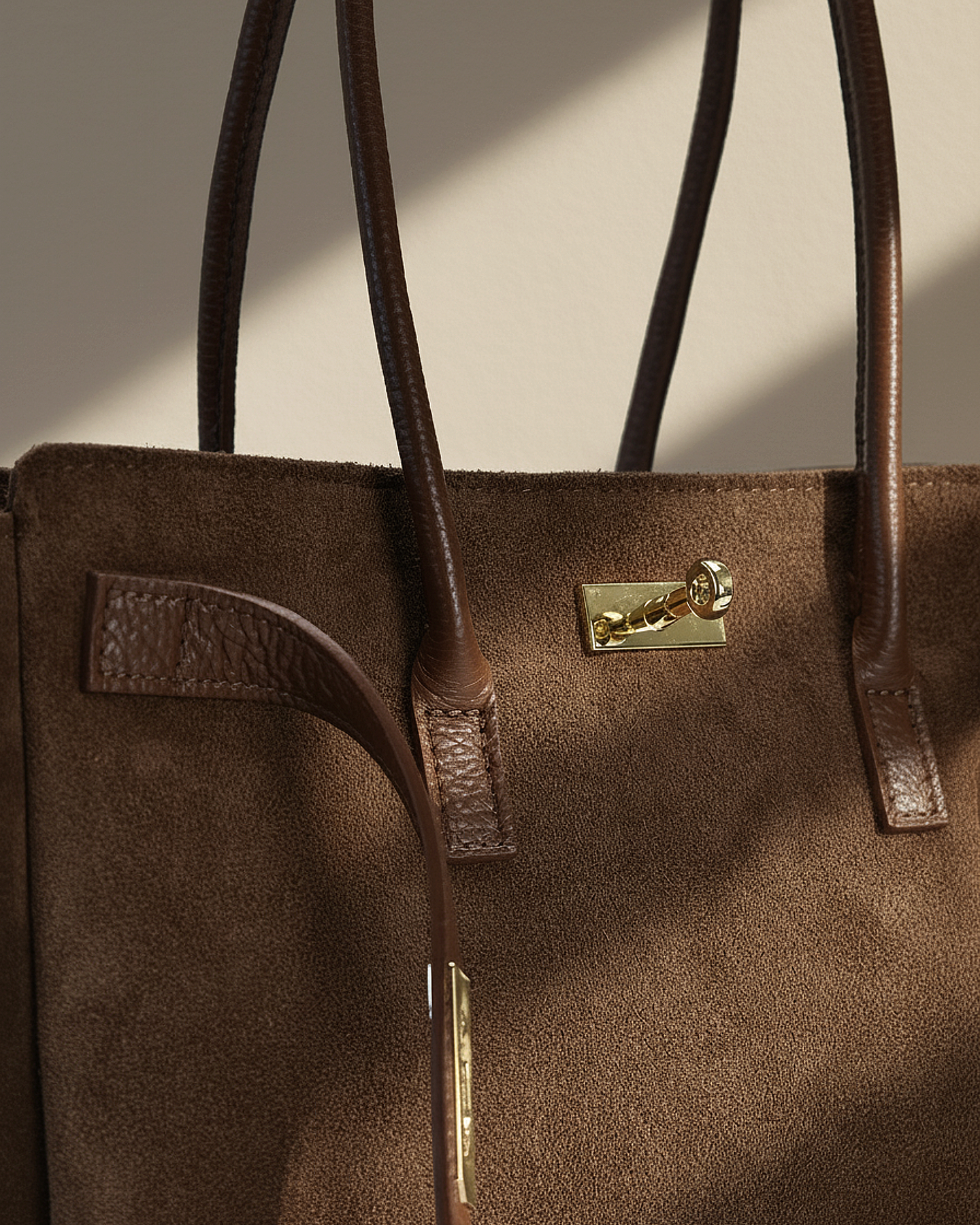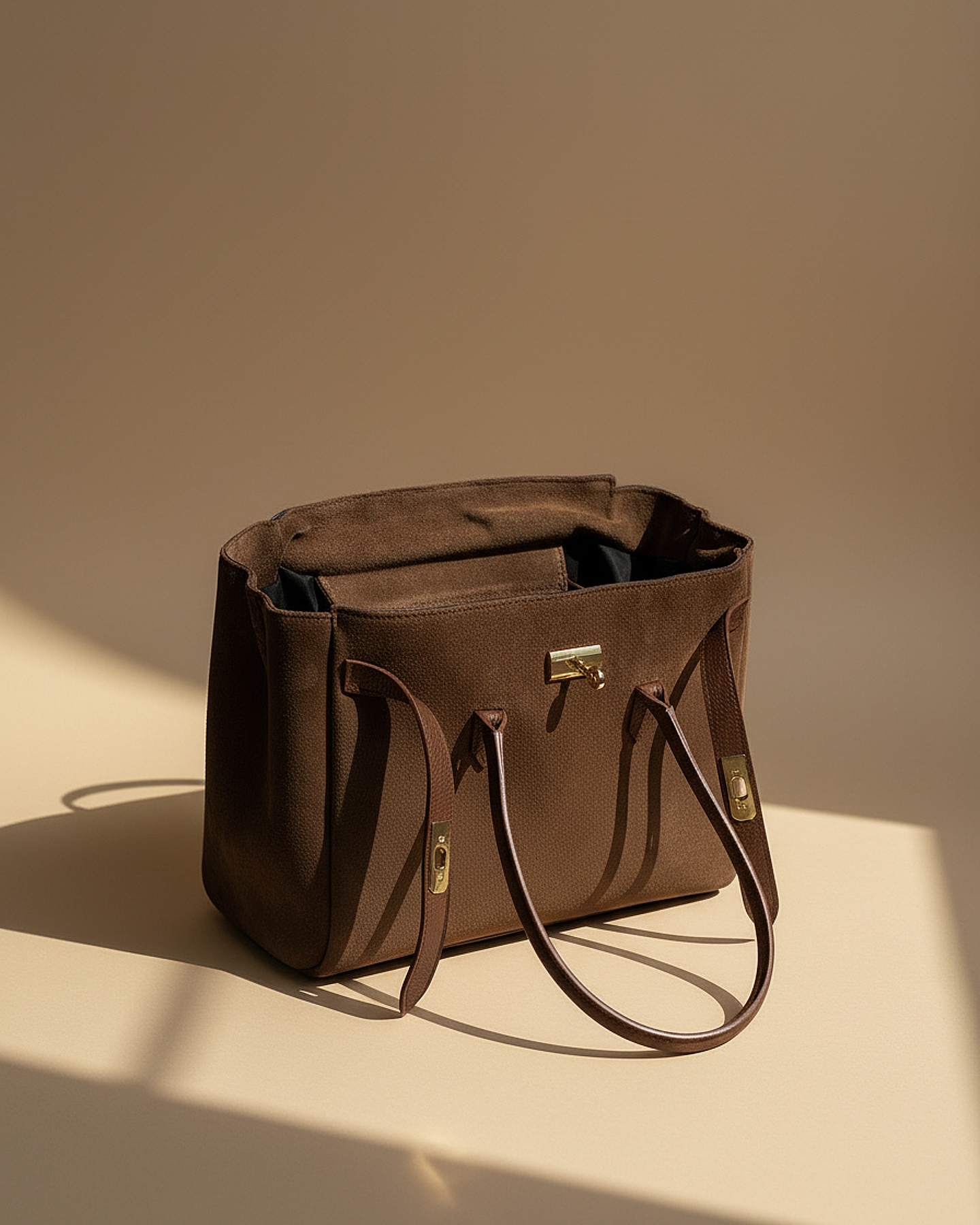 La borsa MATILDA in elegante cioccolato, è l'accessorio perfetto per chi cerca stile e funzionalità in un unico prodotto. Con la sua silhouette strutturata e i raffinati dettagli dorati, questa borsa a mano è pensata per accompagnarti con classe in ogni momento della giornata