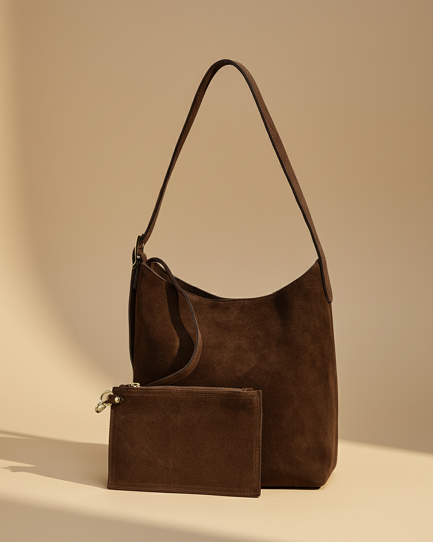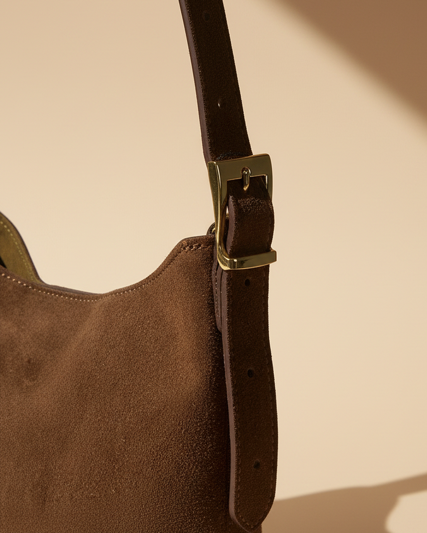 La borsa SILVIA incarna la perfetta fusione tra design minimalista e artigianalità italiana. Realizzata in pregiato camoscio con dettagli in metallo dorato, questa hobo bag è destinata a diventare il tuo accessorio preferito per ogni occasione.