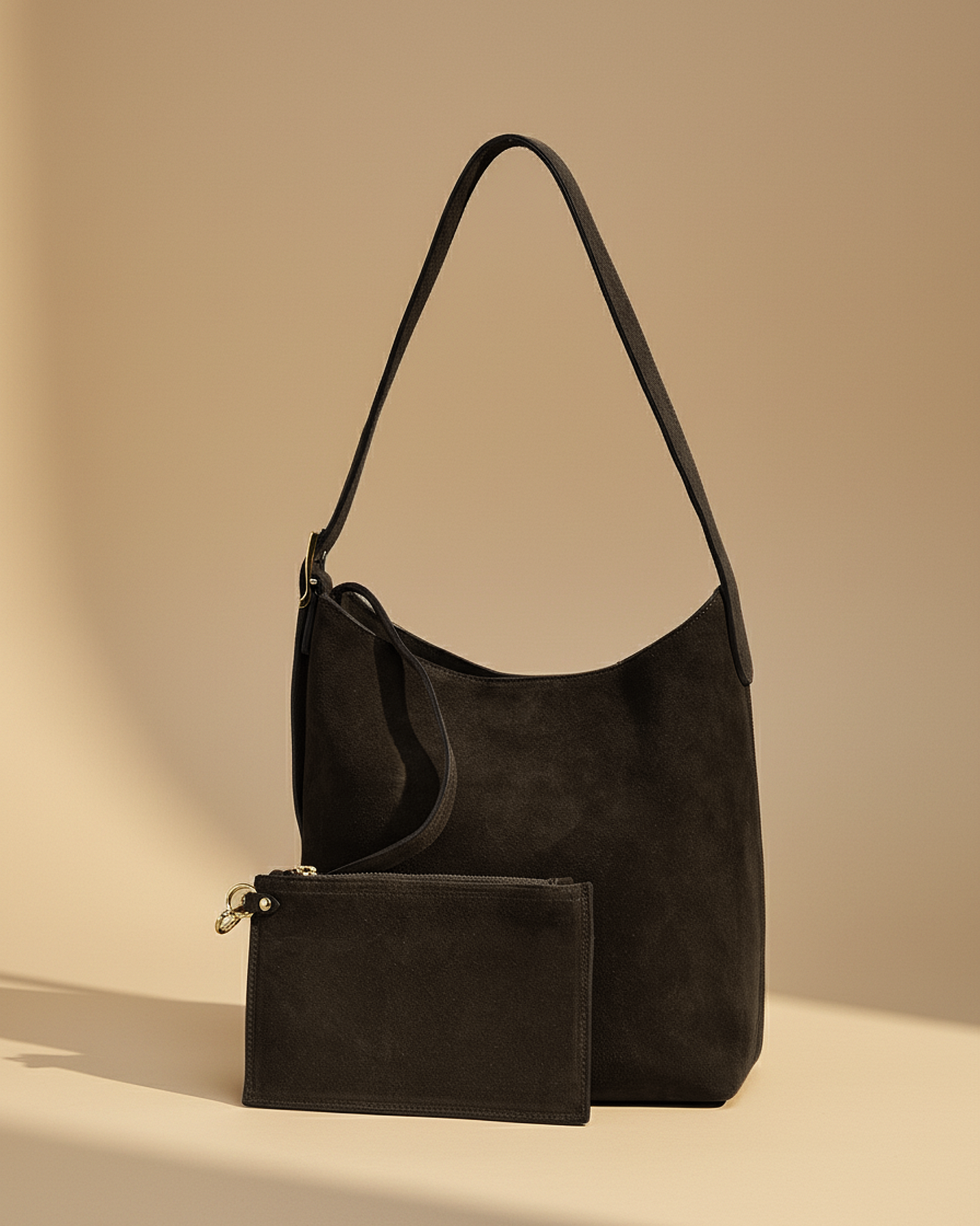 La borsa SILVIA incarna la perfetta fusione tra design minimalista e artigianalità italiana. Realizzata in pregiato camoscio con dettagli in metallo dorato, questa hobo bag è destinata a diventare il tuo accessorio preferito per ogni occasione.