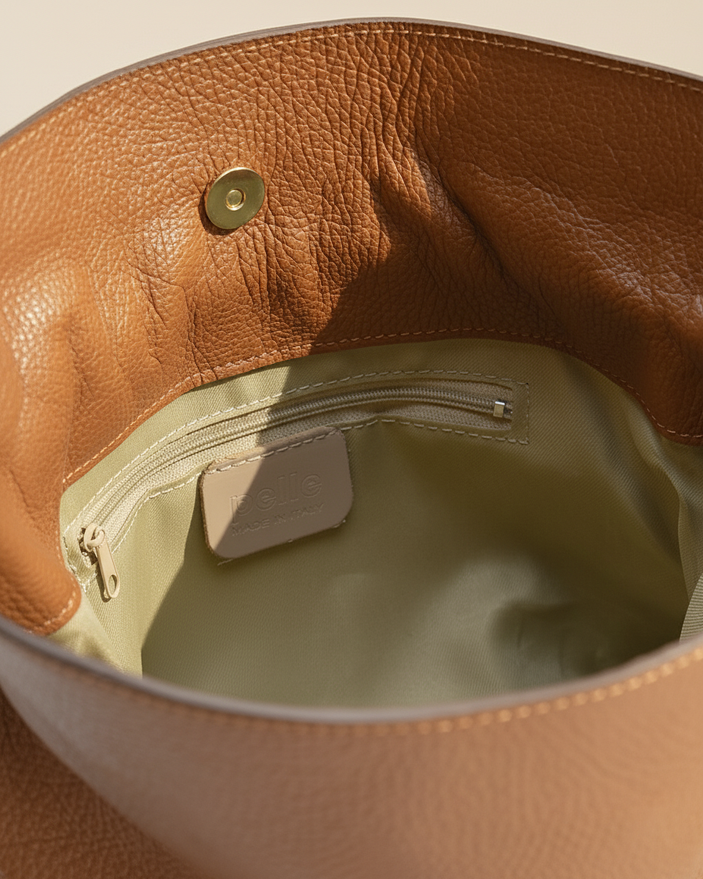 • Pelle di Alta Qualità – Realizzata in morbida pelle con texture naturale che si arricchisce con l'uso