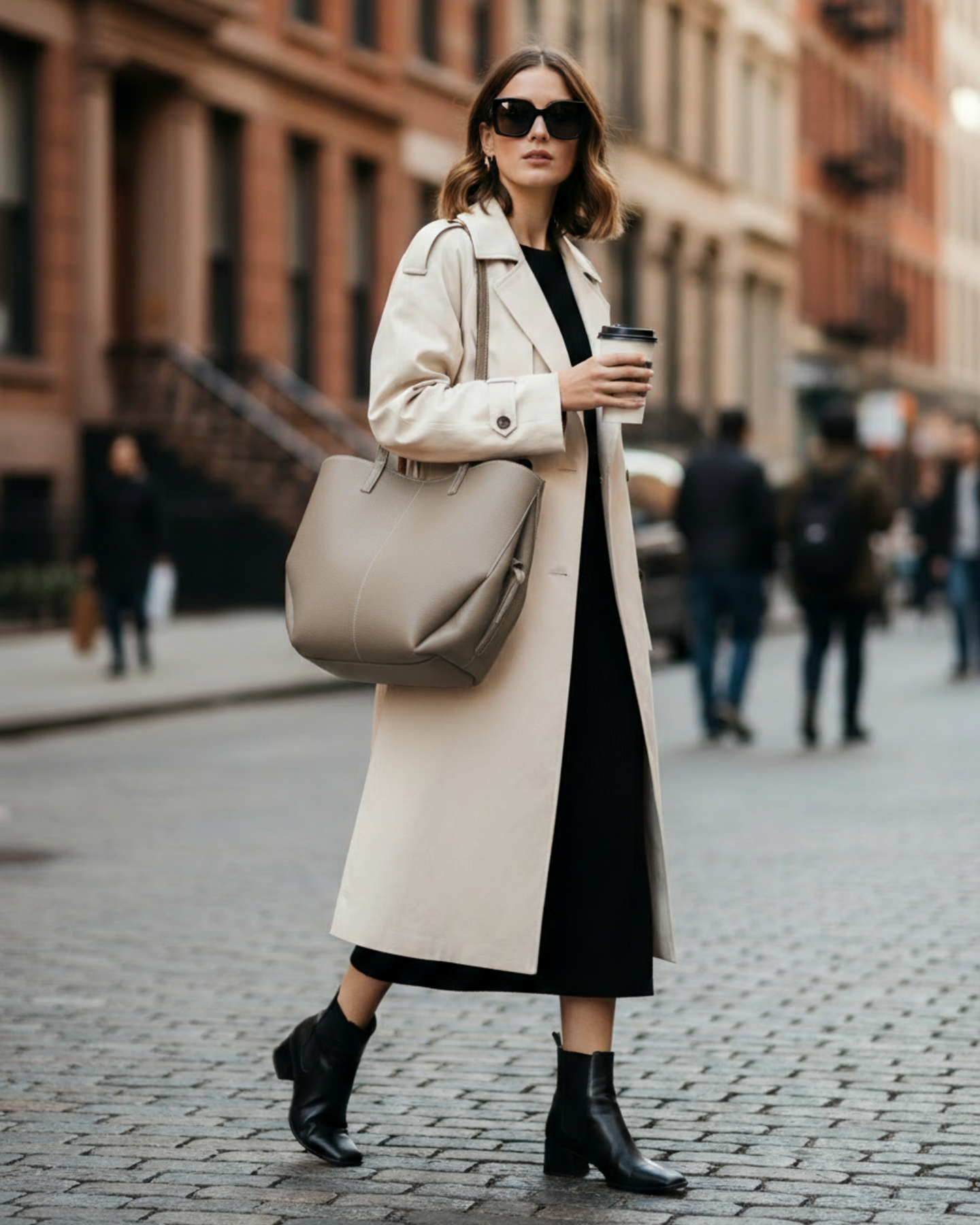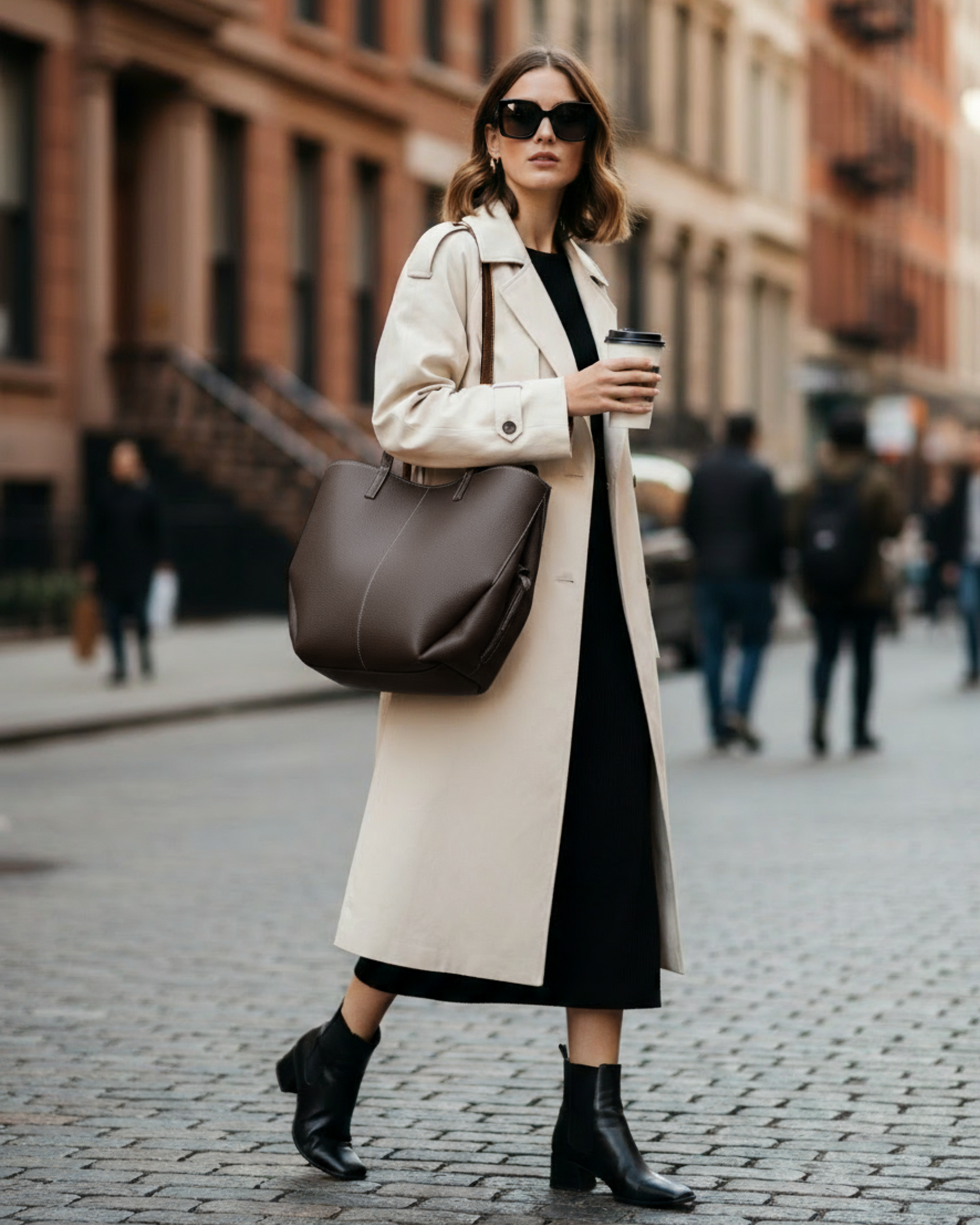 Made in Italy with high quality hammered leather, central zip closure and side buttons, removable bag emptying pouch.