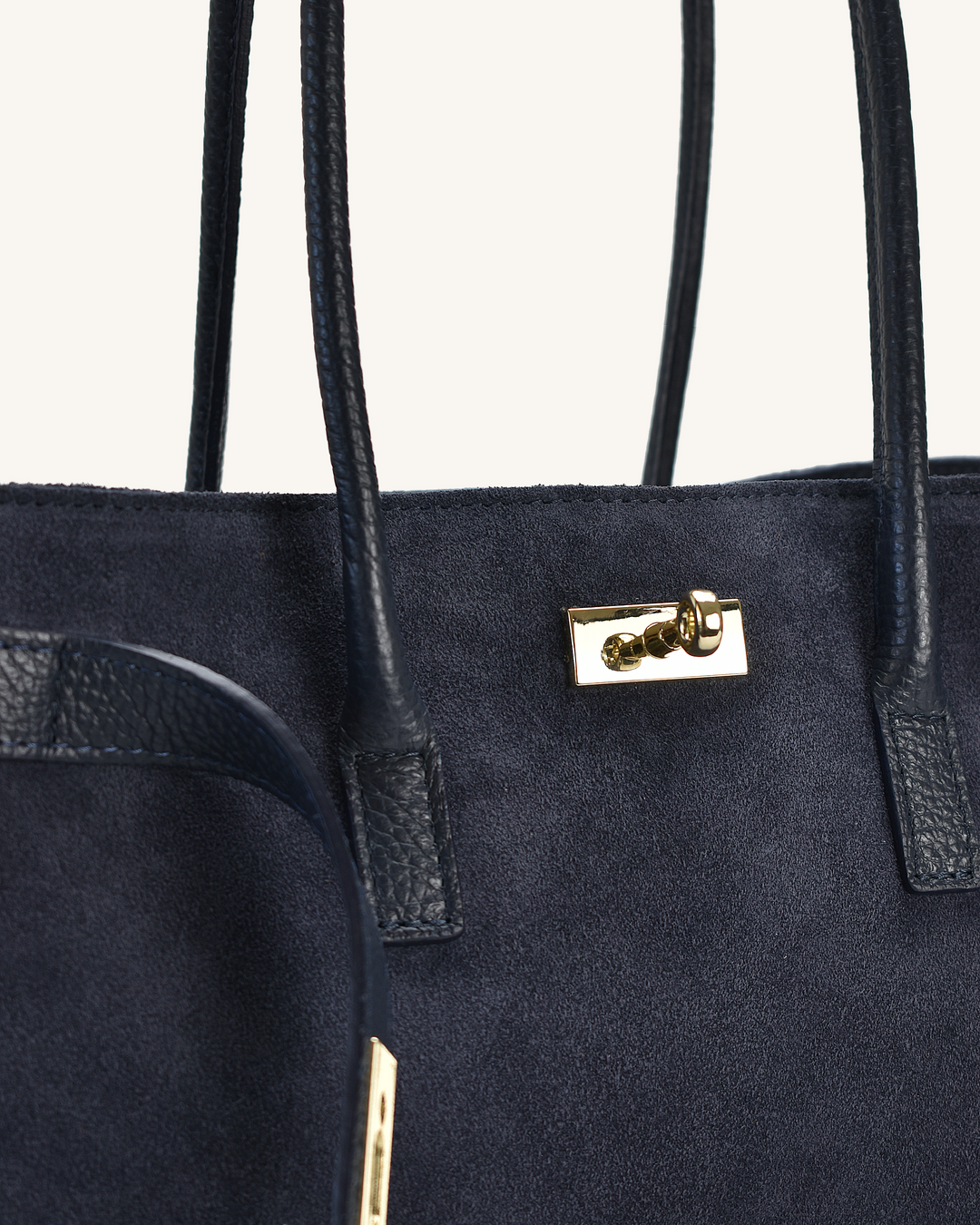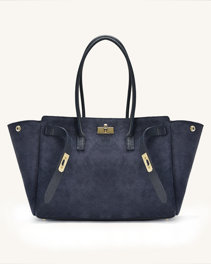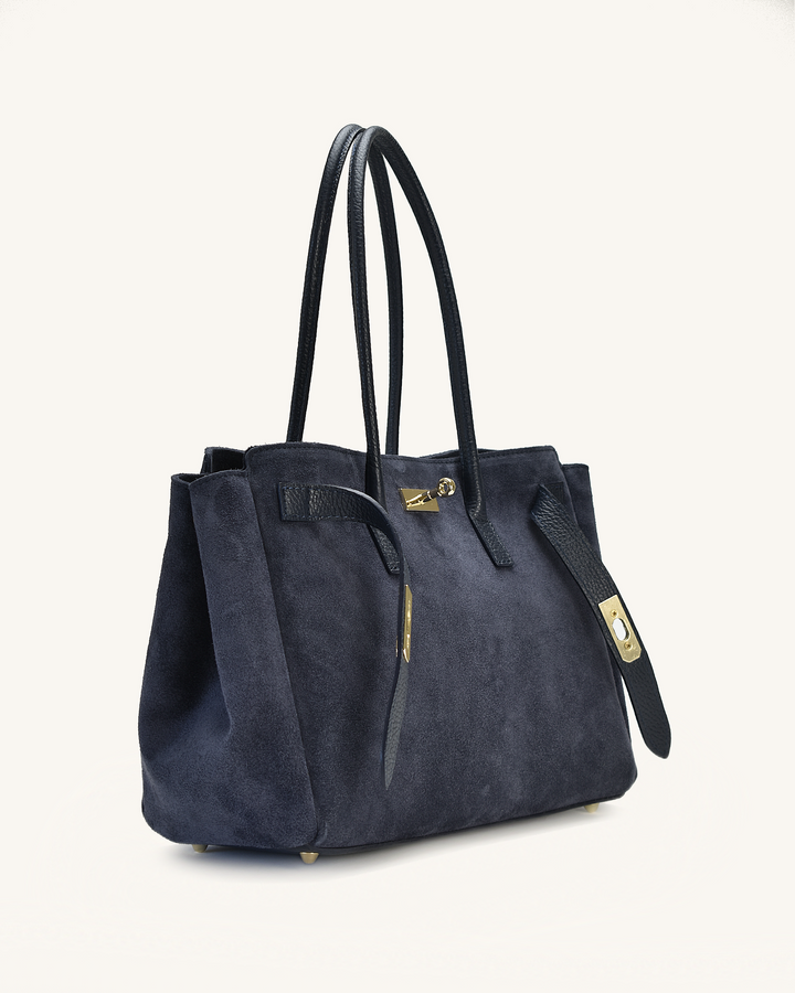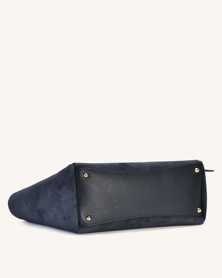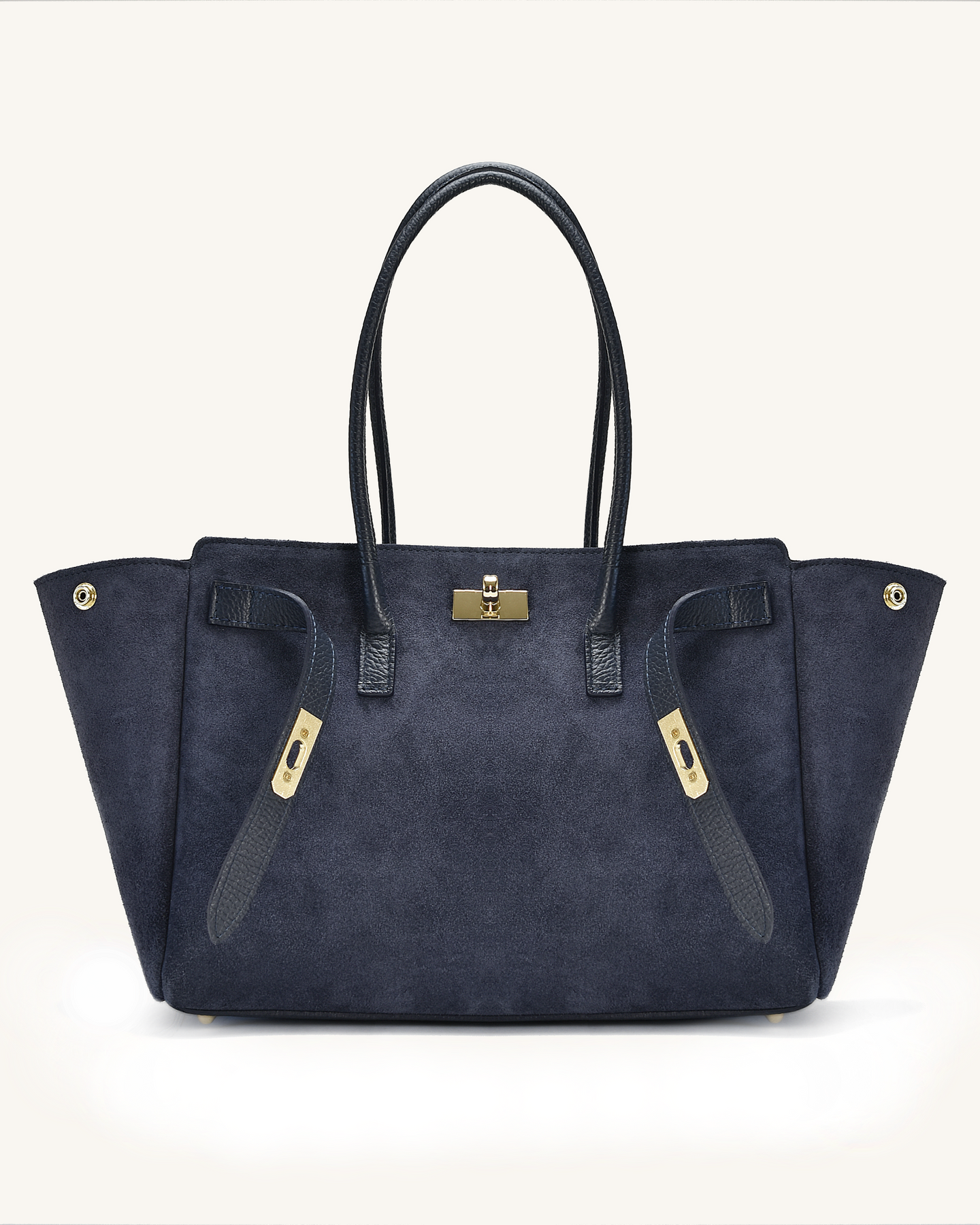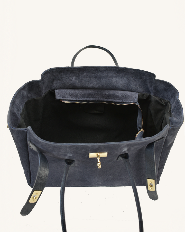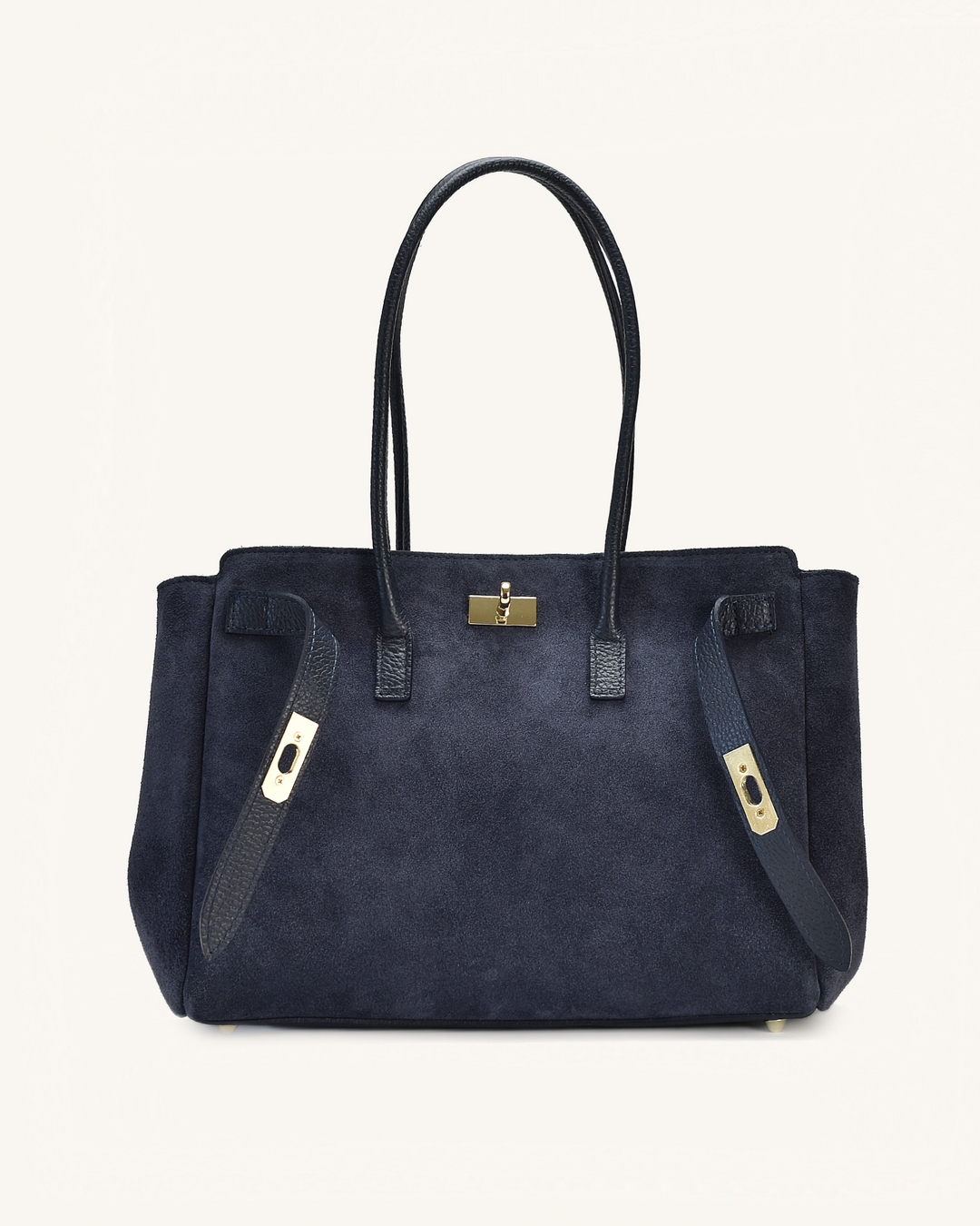 La borsa MATILDA in elegante blu navy è l'accessorio perfetto per chi cerca stile e funzionalità in un unico prodotto. Con la sua silhouette strutturata e i raffinati dettagli dorati, questa borsa a mano è pensata per accompagnarti con classe in ogni momento della giornata
