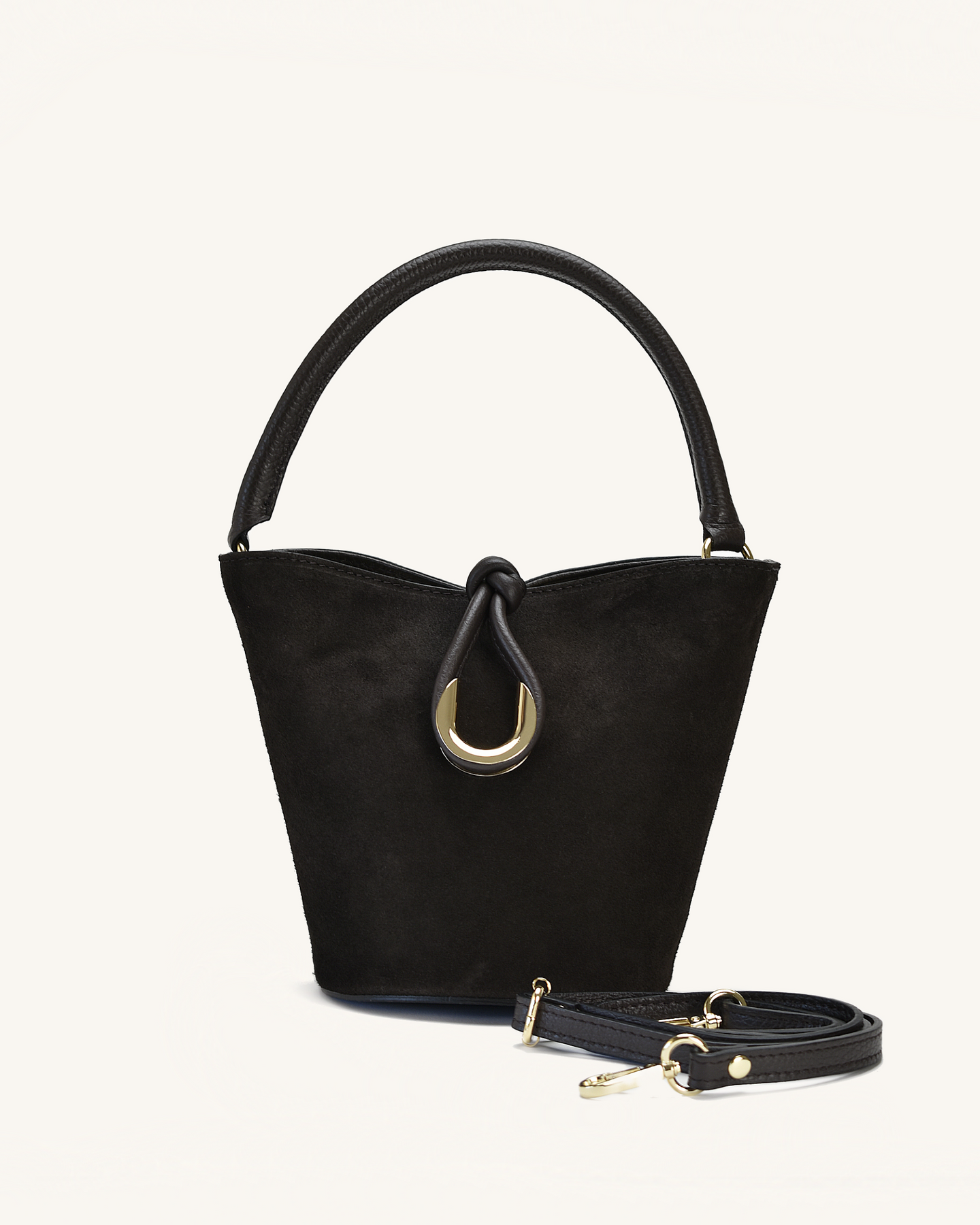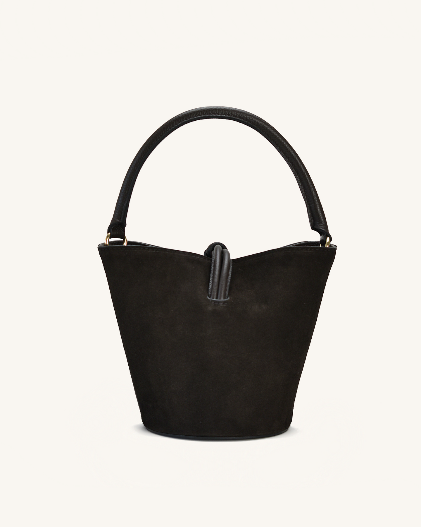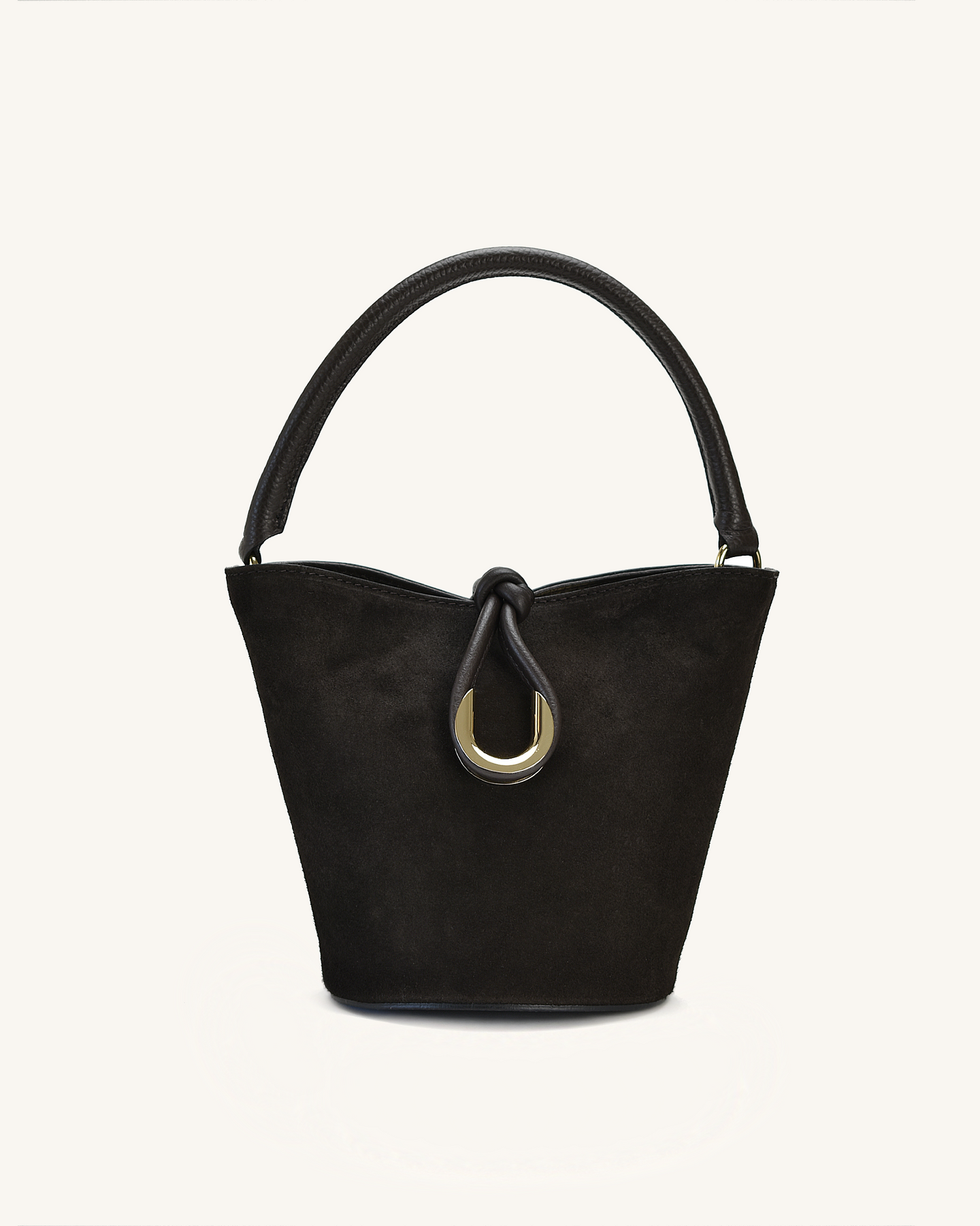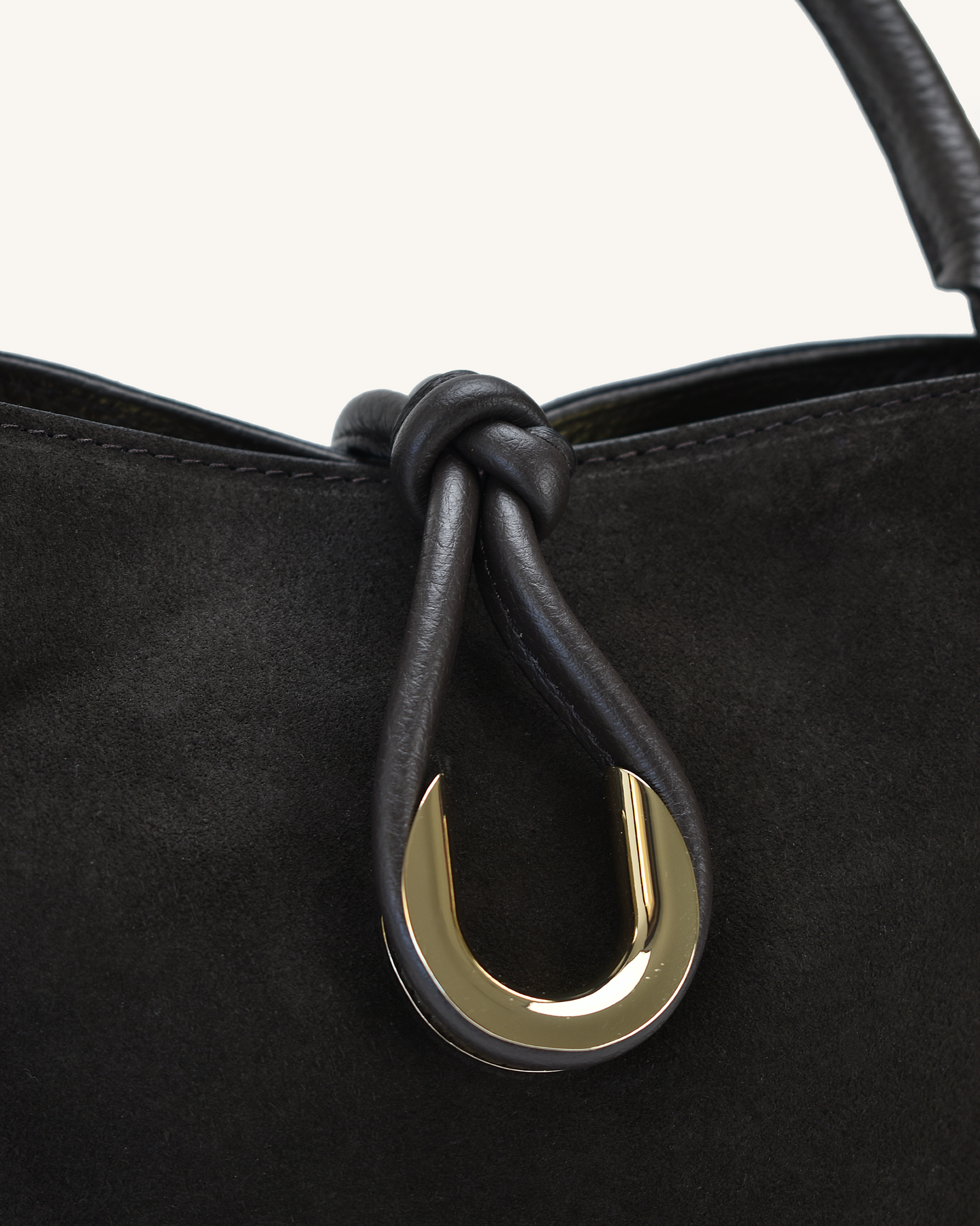 La borsa MIA in camoscio è un perfetto esempio di eleganza minimalista. Con la sua silhouette a secchiello e il dettaglio distintivo dell'anello metallico dorato, questa borsa unisce funzionalità e stile in un design senza tempo che non passa mai di moda.