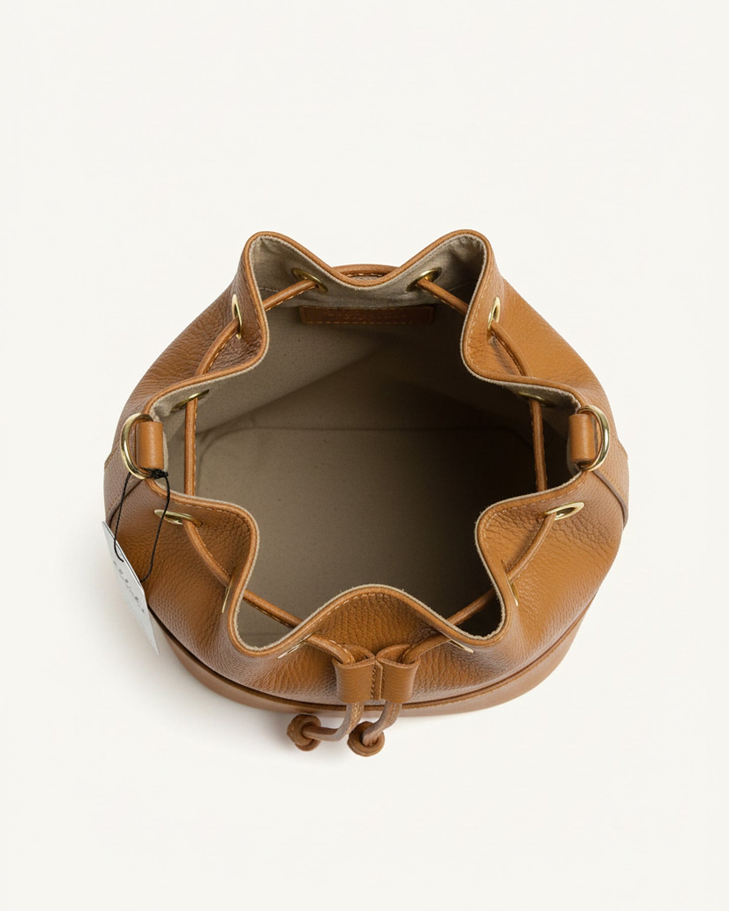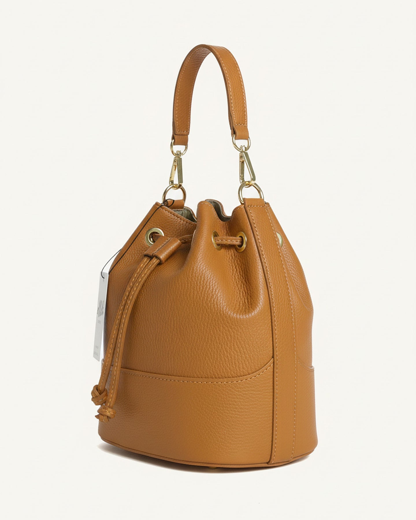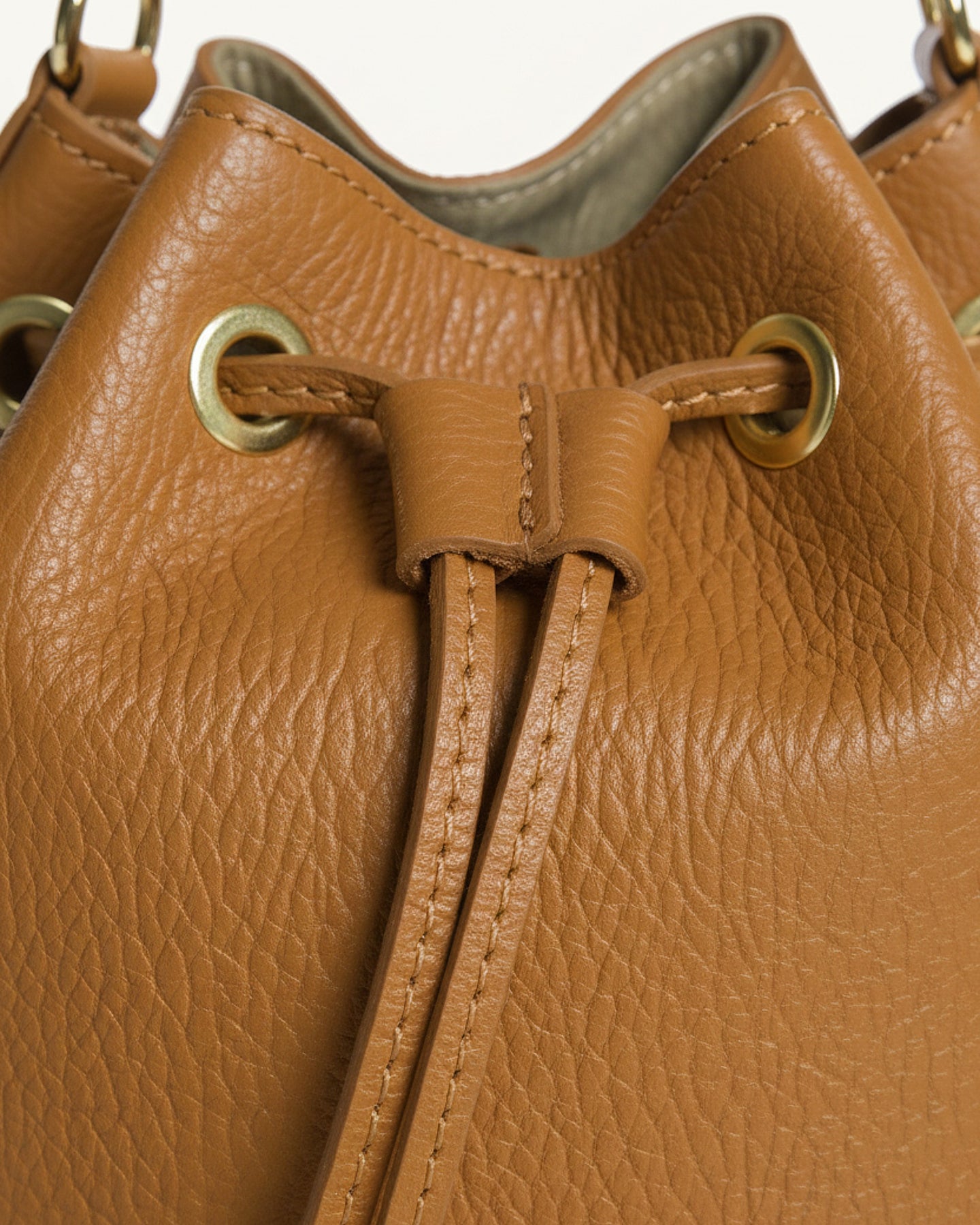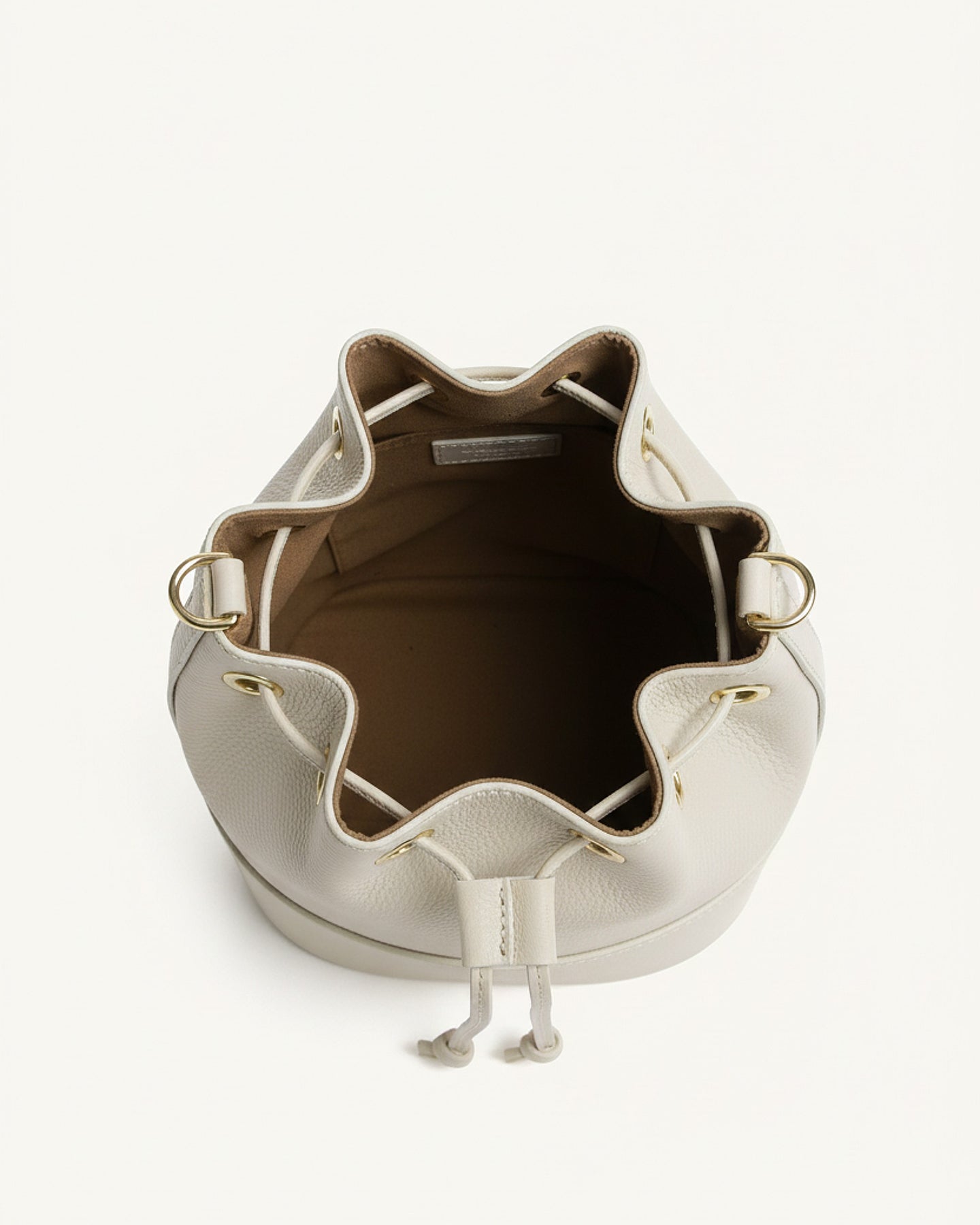 Realizzato in pregiato pellame italiano, questo secchiello rappresenta l'essenza dello stile contemporaneo. La sua silhouette morbida e la chiusura a coulisse con dettagli dorati creano un perfetto equilibrio tra raffinatezza e praticità.