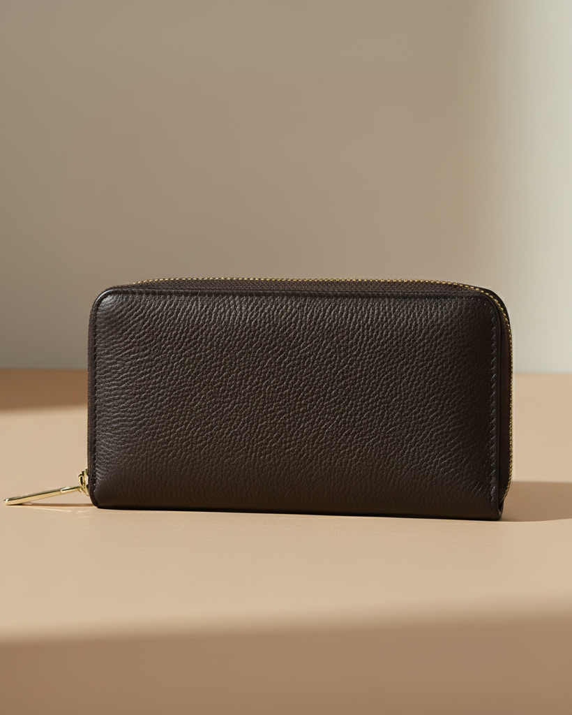 Portafoglio Zip L, l'accessorio da avere sempre in borsa. Realizzato artigianalmente in Italia con morbidissima pelle dollaro. Con apertura a zip per una massa sicurezza, interno composto da scomparti per carte, banconote e una pratica zip centrale per le monete.